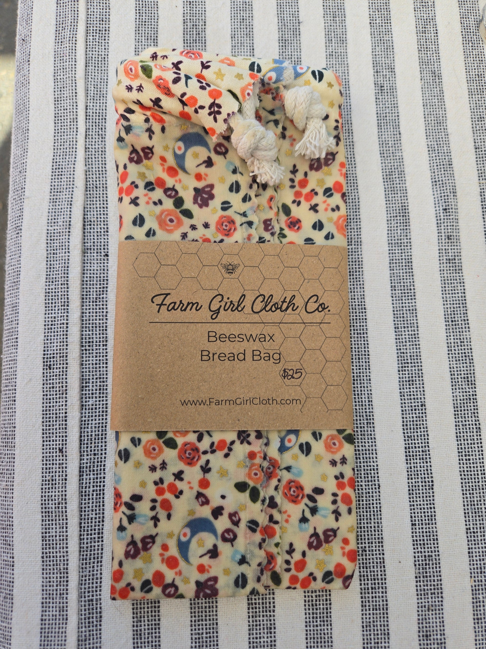 Beeswax Bread Bag. Large 12x16" bag made with 100% Cotton, and coated in a beeswax mixture to keep your bread or other food items fresh between uses.